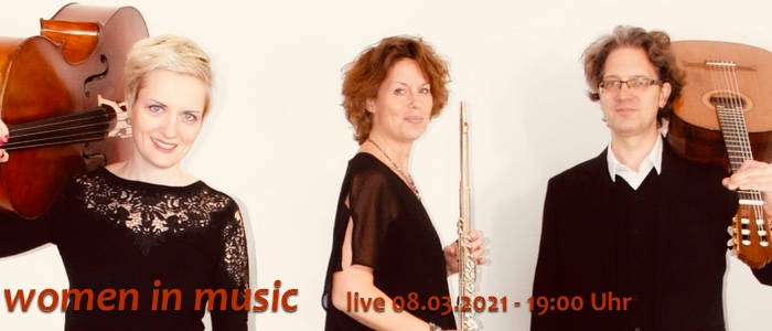 Zu unserer Konzertreihe "Women in Music in Wiesbaden" bieten wir auf unserem YouTube-Kanal 7 Tage lang täglich Musik von Komponistinnen. Freuen Sie sich auf Musik für Querflöte, Cello und Gitare solistisch, im Duo und im Trio.
